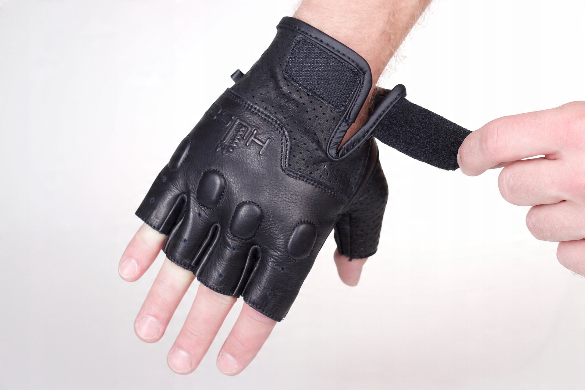 Чоловічі шкіряні мотоциклетні рукавички без пальців HUSAR ROCK чорного кольору