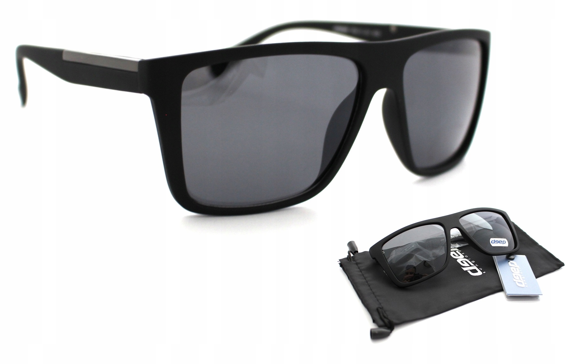 Новые оригинальные солнцезащитные очки DEEP из поликарбоната. Очки безопасны и сертифицированы CE на внутренней стороне. на храме имеется маркировка производителя, например логотип производителя, тип УФ-фильтра, знак сертификации CE и номер модели. Каждая пара очков продается в комплекте с черным мягким чехлом той же марки и салфеткой из микрофибры. Весь набор выглядит великолепно, что делает его еще и привлекательным подарком любимому человеку.