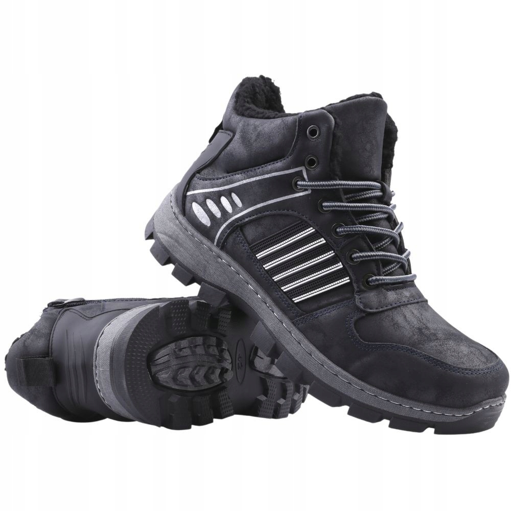 Мужские походы на группу, плоская подошва. Круглый нос. Ледяная спереди для круглых шнурков, очень закрепленных молнией. Верхний украшен строчкой. Сделано из эко -лизера. Внутри, сильно изолировано от имитации меха. В идеале сделано в прохладные, зимние дни.