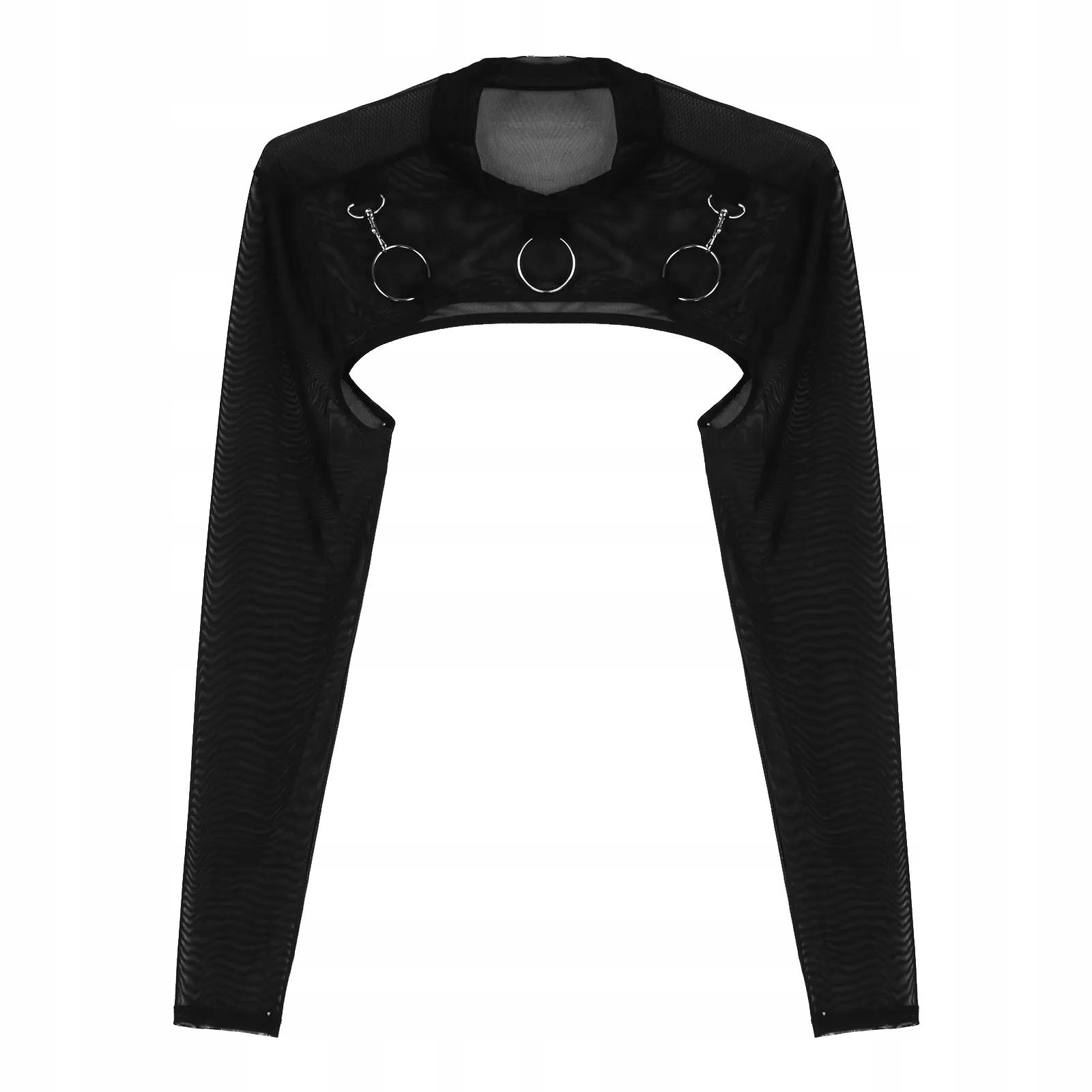 Мужской эротический эротический т -машка металлические кольца с длинным рукавом голый живот черный