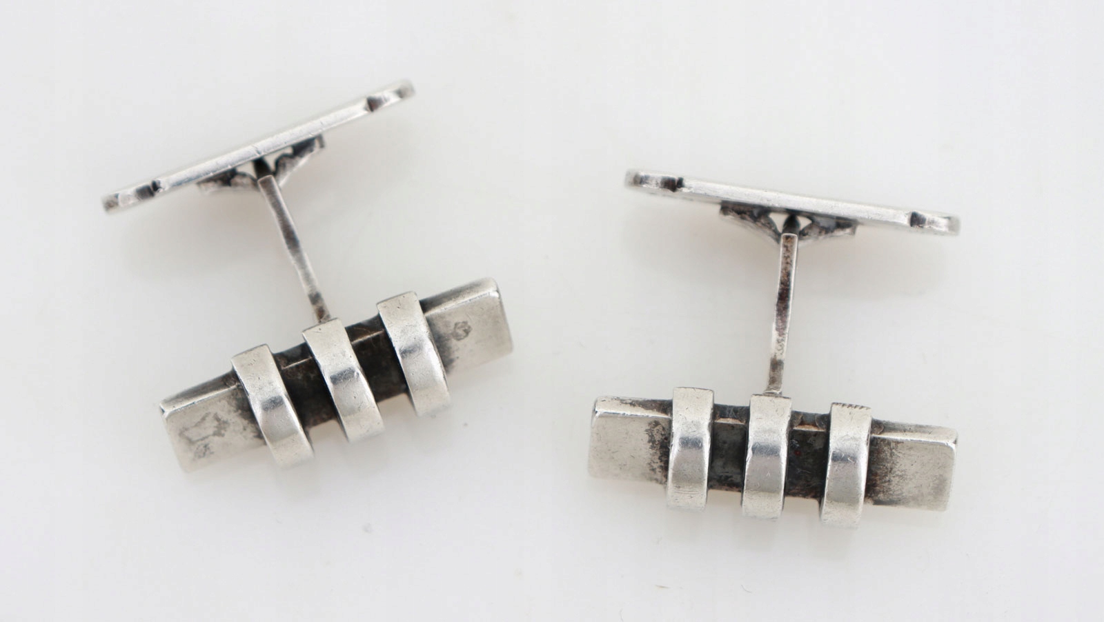 Запонки из серебра 830 пробы. Передняя часть украшена геометрическим мотивом.