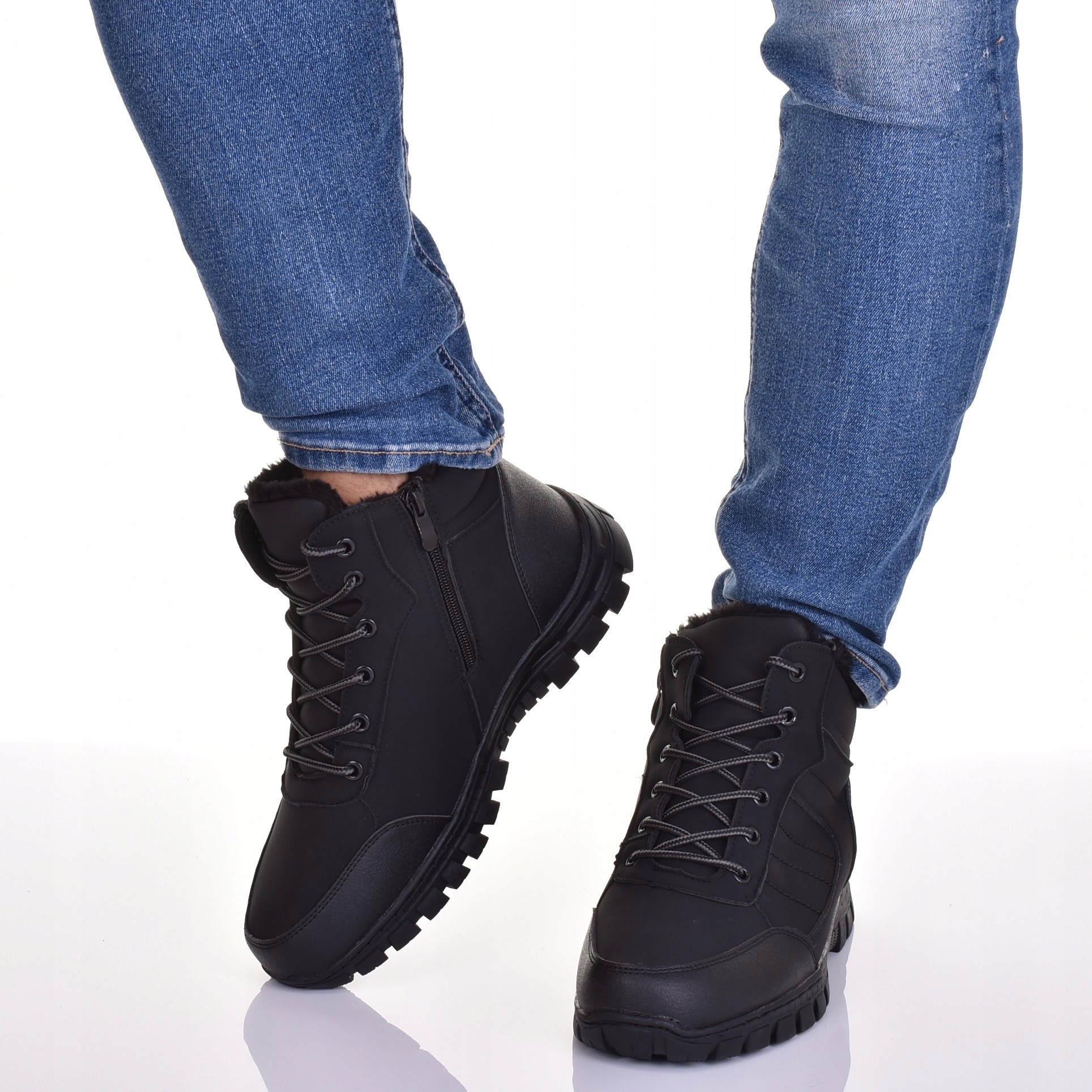 ЧОЛОВІЧІ ЗИМОВІ ЧОБОТИНКИ З ХУТРОМ ШКІРИ, ЧОРНІ