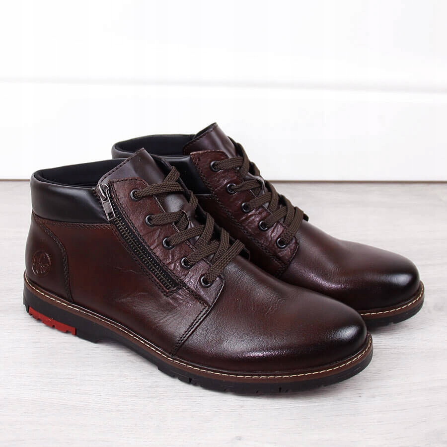 Удобные мужские кожаные ботинки на шерстяной подкладке, коричневые Rieker 10502-25