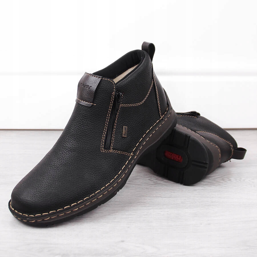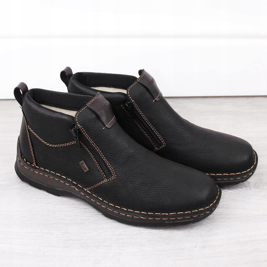 Ботильоны мужские кожаные водонепроницаемые на утепленных молниях, черные Rieker 05398-00