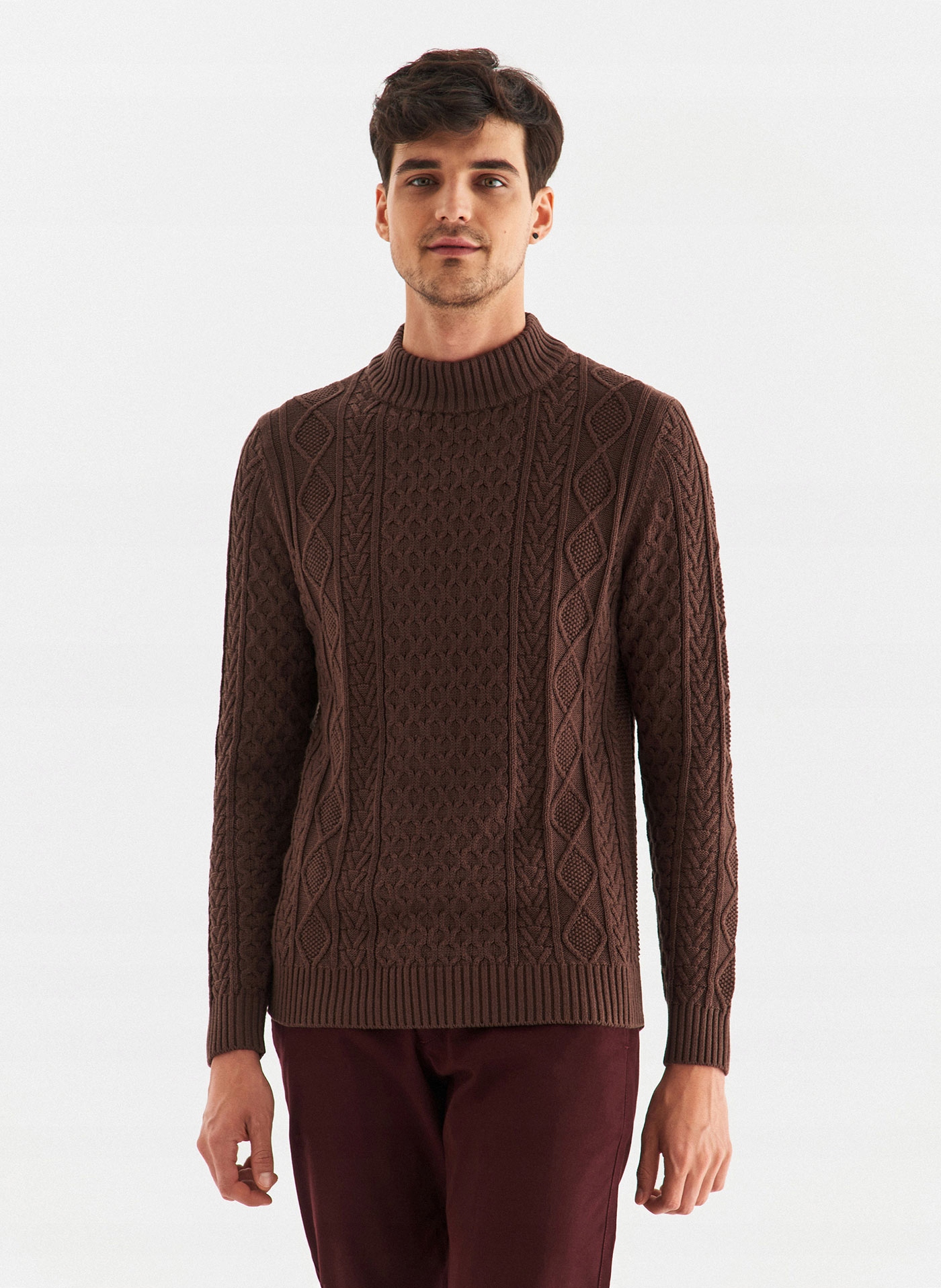 Коричневый свитер с коричневой водолазкой из осенне-зимней коллекции Pako Lorente. Свитер отличается оригинальным плетением кос и качественным материалом. Отличное предложение для мужчин всех возрастов.