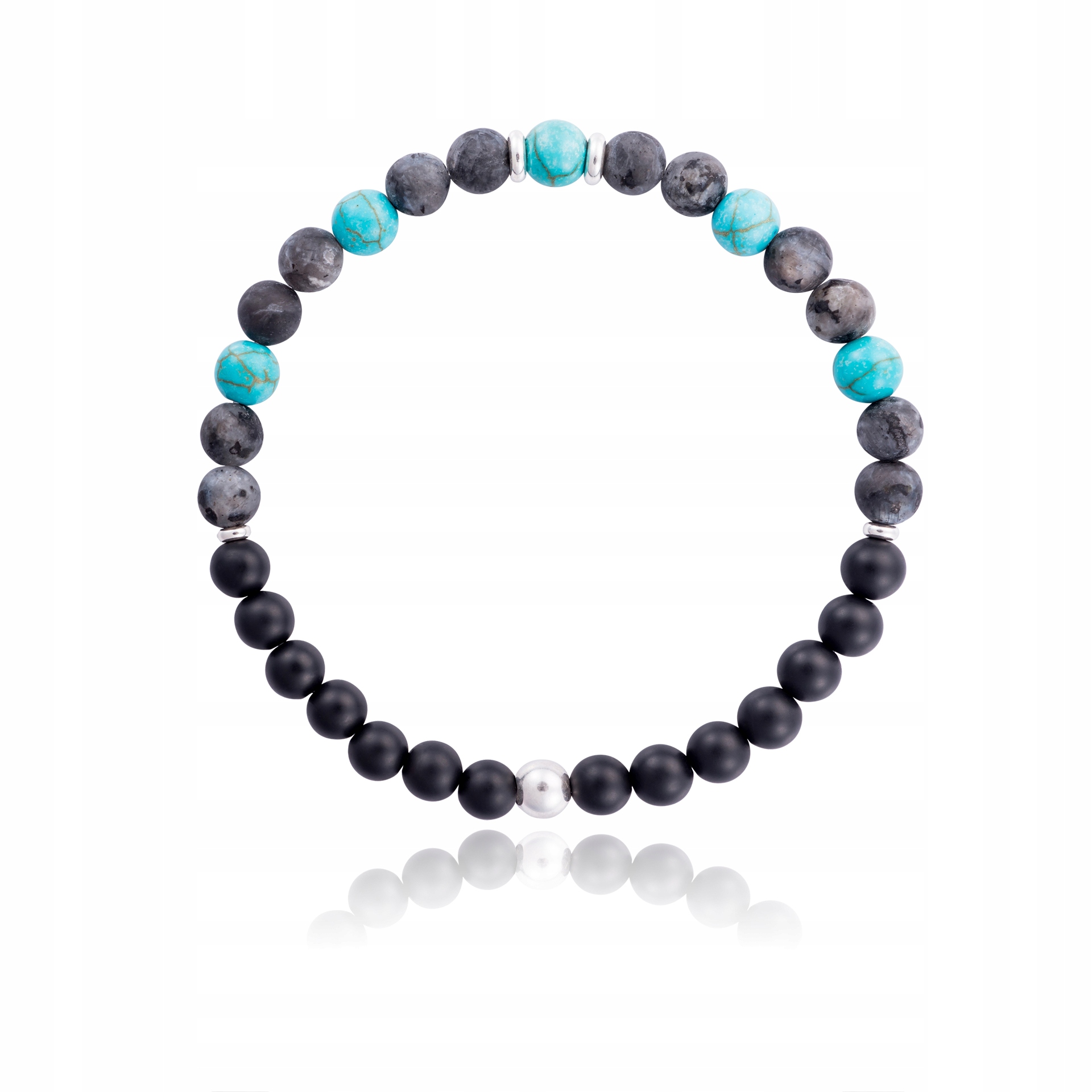 ЧОЛОВІЧИЙ БРАСЛЕТ СО СРІБЛА З ОНІКСУ ЛАБРАДОРИТ ХОВЛАЙТ