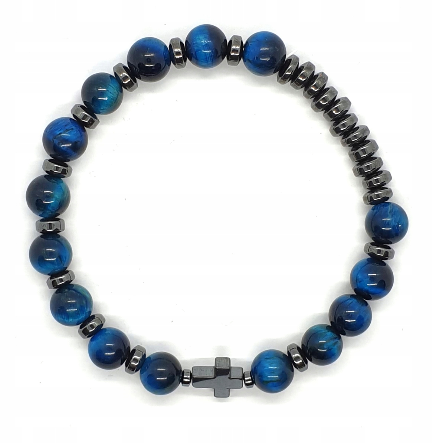 Чоловічий браслет з розарію Тигрове око блакитного кольору