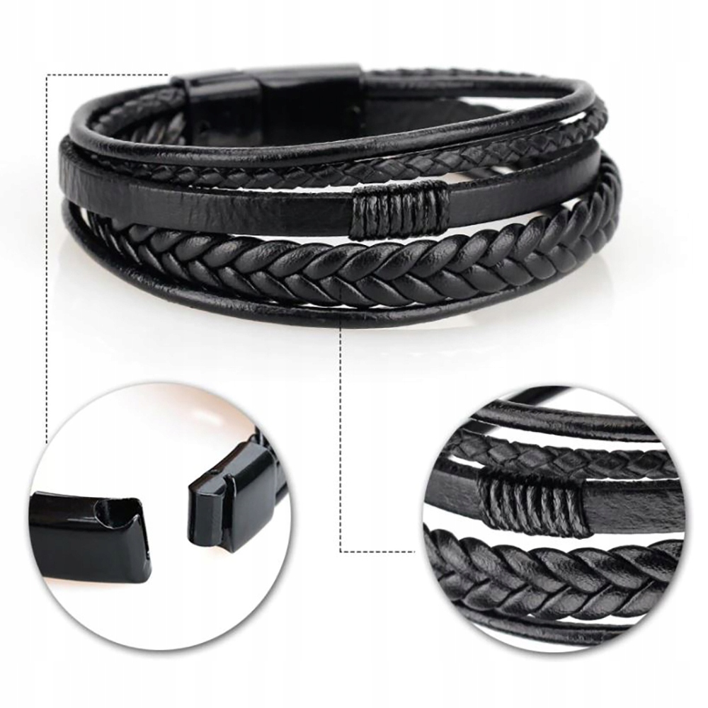 ЧОЛОВІЧИЙ ЧОРНИЙ ШКІРЯНИЙ БРАСЛЕТ, ЕЛЕГАНТ ПРЕМІУМ СТАЛ