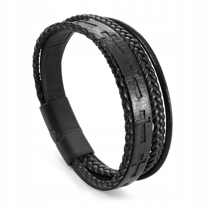 МУЖСКОЙ ЧЕРНЫЙ КОЖАНЫЙ БРАСЛЕТ С КРЕСТОВЫМ РЕМЕШКОМ