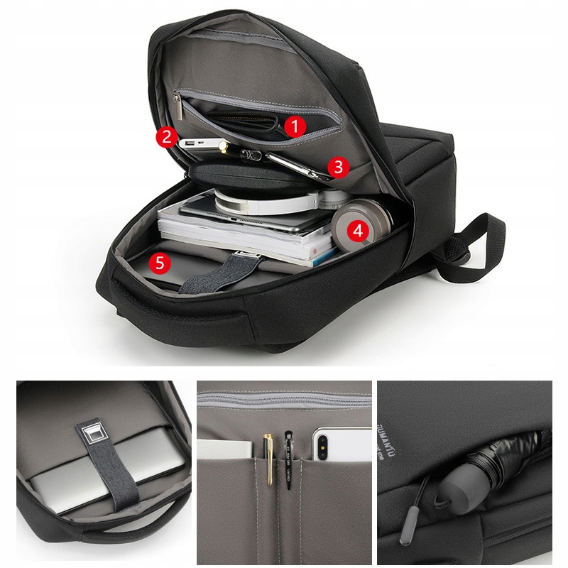 На рюкзаке 1 лямка. USB-порт, подготовьте собственный блок питания и поместите аккумулятор в рюкзак, чтобы можно было удобно заряжать телефон, не держа его в руках.