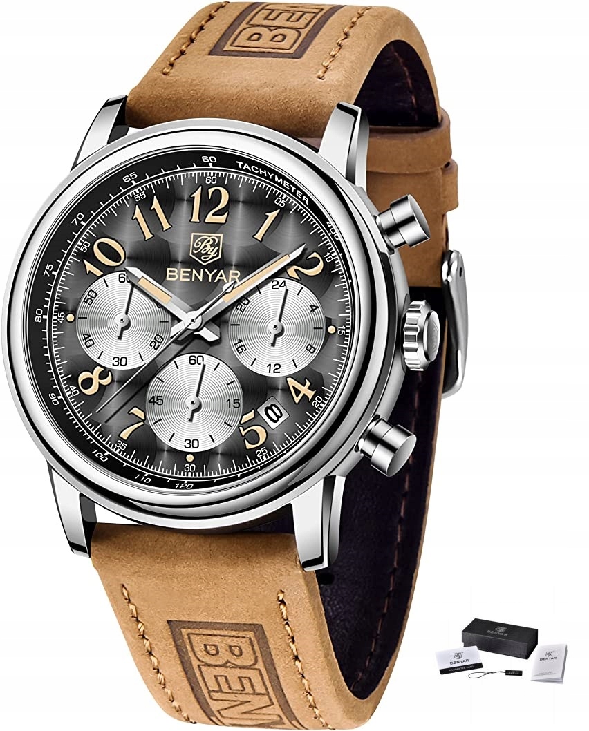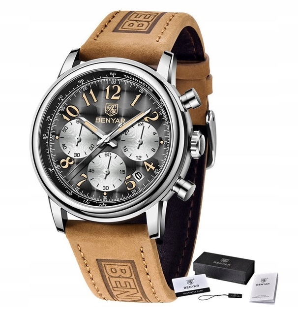 BENYAR МУЖСКИЕ ЭЛЕГАНТНЫЕ ЧАСЫ-ХРОНОГРАФ + КОРОБКА