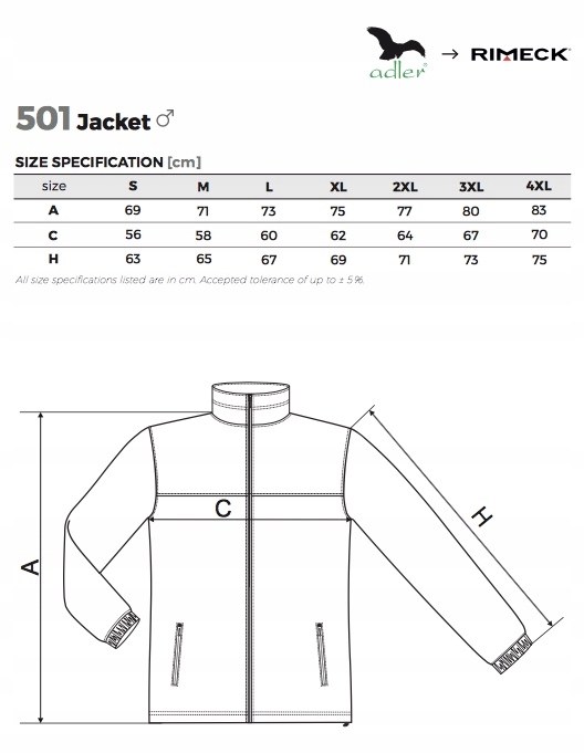 RIMECK JACKET 501 мужской флис, плотность 280г/м2