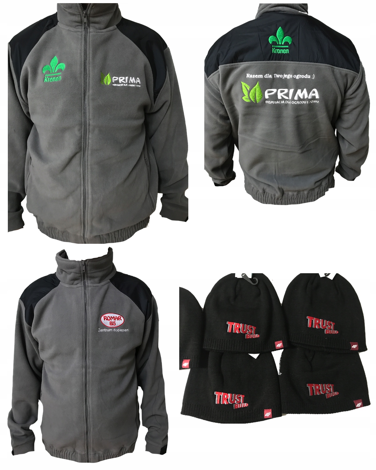 Вышиваем на флисах, толстовках, жилетах, софтшеллах, куртках, футболках, строгих рубашках, поварских фартуках, униформе по охране труда, зимних шапках и бейсболках, а также на выкройках.