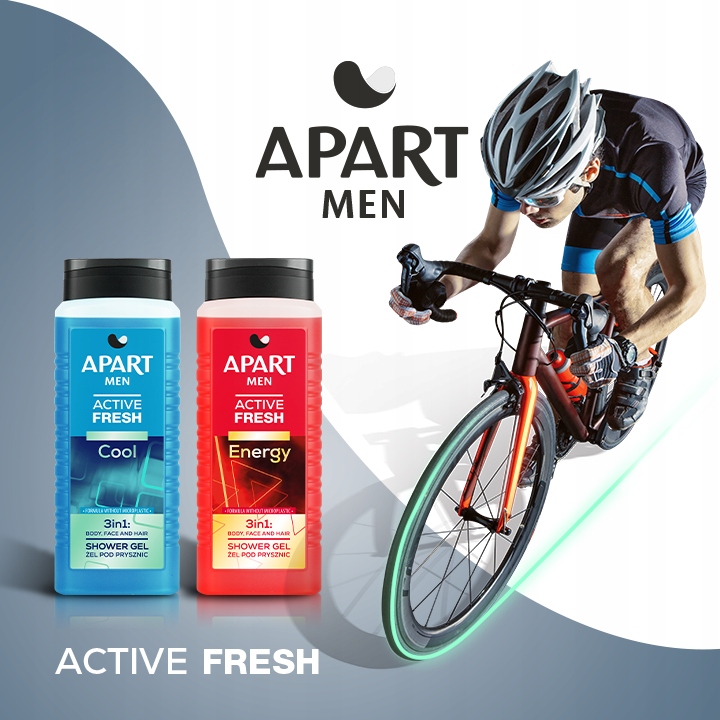 Мужской гель для душа Apart 500 мл Active Fresh -формула 3-в-1 для мытья тела, лица и волос, созданная для мужчин, требующих от жизни большего