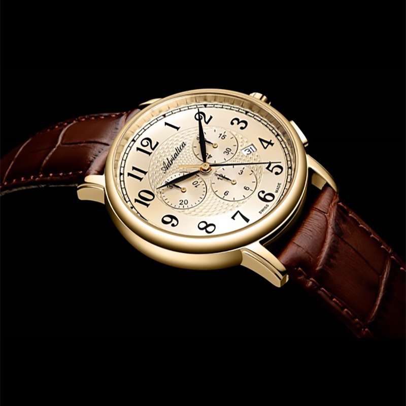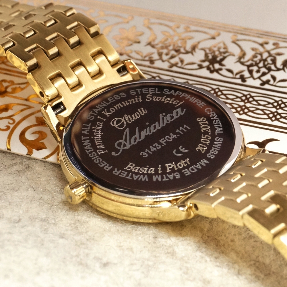 На фото ниже показан пример гравировки, выполненной на часах Adriatica.