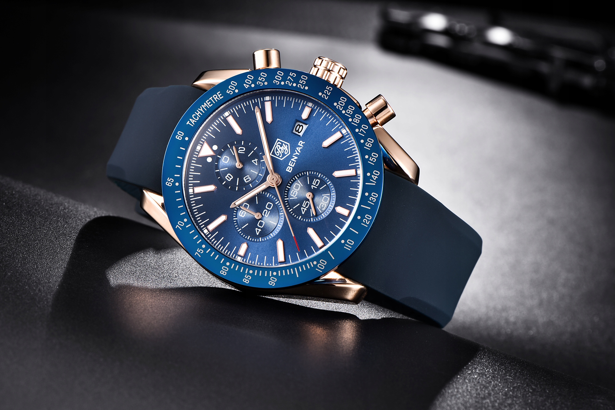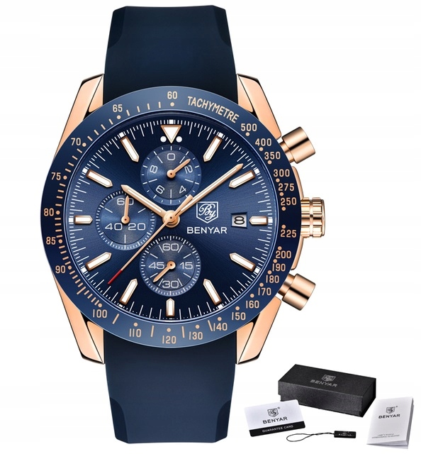 МУЖСКИЕ КЛАССИЧЕСКИЕ ЧАСЫ-ХРОНОГРАФ BENYAR + КОРОБКА