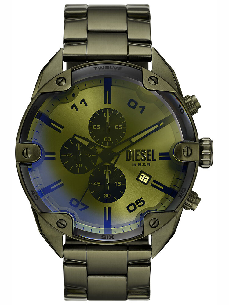 Men's Watch Diesel Spiked Chronograph DZ4670 сочетает в себе элегантность с функциональностью благодаря зеленым цветам. Его конверт и браслет изготовлены из высококачественной нержавеющей стали, а щит был тонко отделан с разрезом. Защищен минеральным стеклом, обеспечивает долговечность и сопротивление повреждению. Модель оснащена маркой даты, хронографом и люминесцентным покрытием, что увеличивает ее практичность. Водостойкость при 5 атмеле делает часы, устойчивые к контакту с водой во время повседневной деятельности
