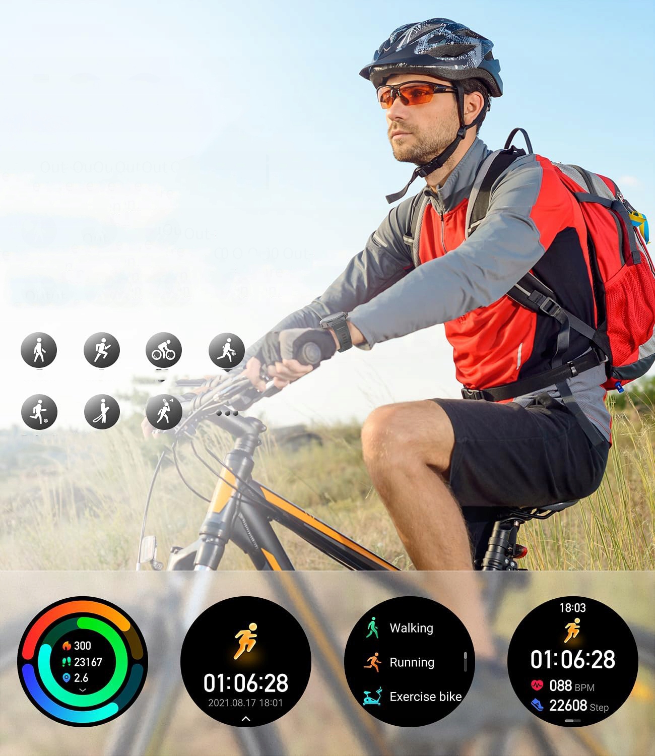 - Умные часы для мужчин для использования на открытом воздухе имеют 120 различных спортивных режимов, включая бег, альпинизм, езда на велосипеде, прыжки в длину, катание на лыжах, катание на лыжах, баскетбол, прыжки и многие другие режимы фитнеса.