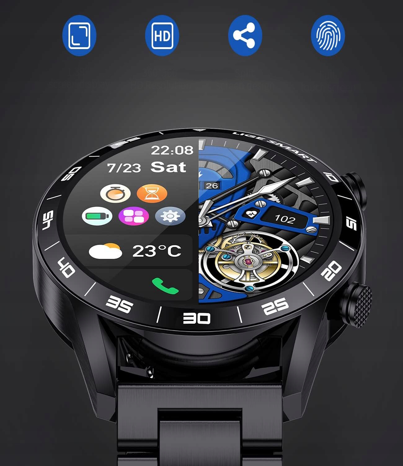 - Умные часы Lige оснащен 1,43-дюймовым амолевым экраном с высоким разрешением и разрешением 466 x 466. Включен дисплей, который всегда поддерживает экран (аналоговые часы или цифровое время).