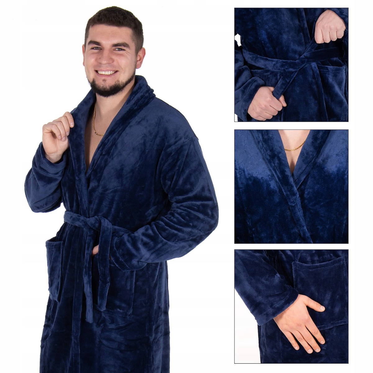 ХАЛАТ МУЖСКОЙ ПРЕМИУМ ФЛИСОВЫЙ ХАЛАТ, ТЁПЛЫЙ ТЕМНО-СИНИЙ