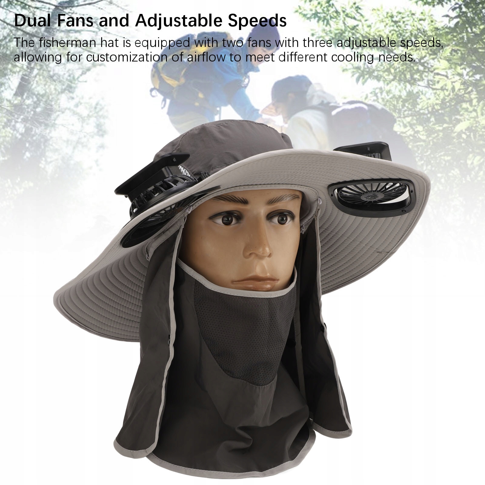 1. Двойные вентиляторы и регулируемая скорость: шляпа рыбака оснащена двумя вентиляторами с тремя регулируемыми скоростями, что позволяет регулировать поток воздуха в соответствии с различными потребностями в охлаждении.
