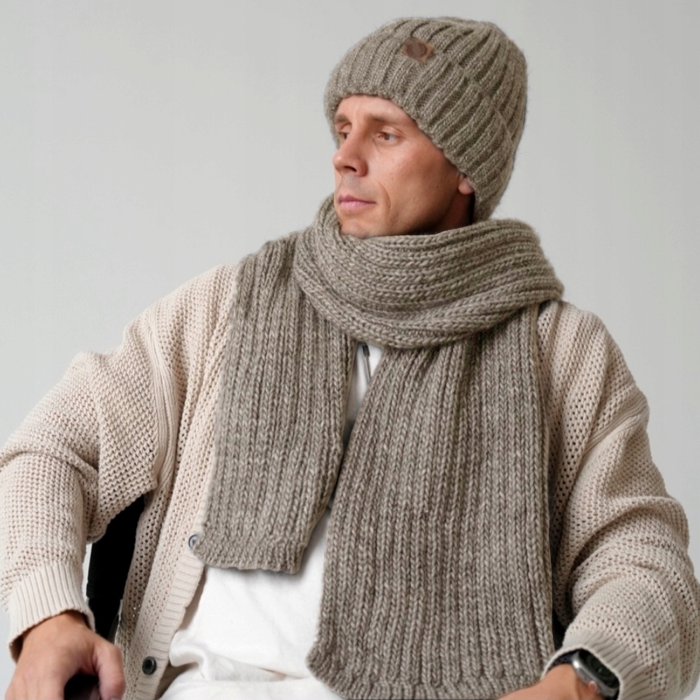 ЧОЛОВІЧИЙ КОМПЛЕКТ ШАПКА + ШЕРСТЯНИЙ ШАЛФ, ЩІЛЬНИЙ теплий зимовий шарф ПРЕМІУМ
