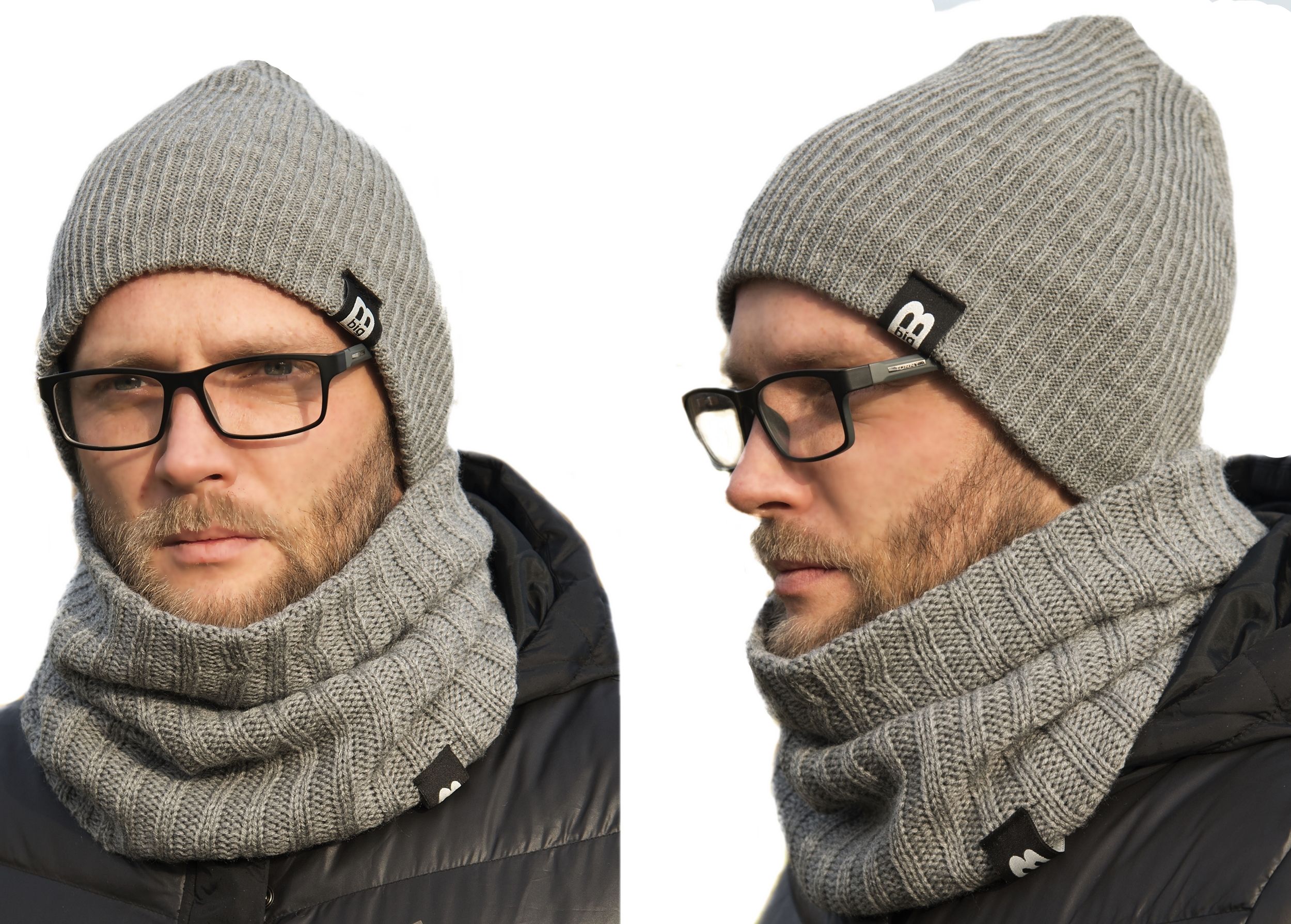 Чоловічий КОМПЛЕКТ ШАПКА З ТУБОЧКОЮ на осінь та зиму, польська якість UNI W8