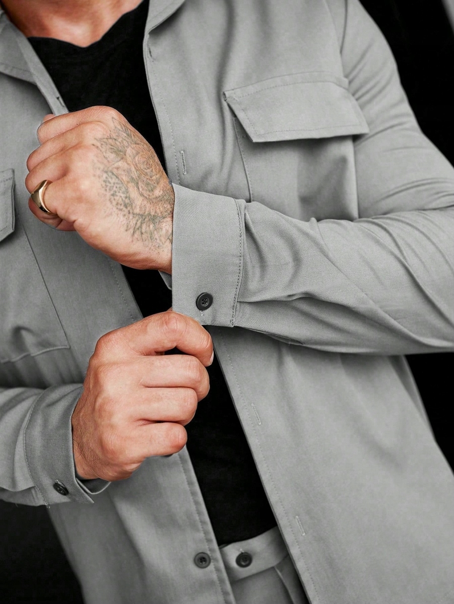 ЧОЛОВІЧИЙ КОМПЛЕКТ SHEIN , ПРЯМІ ШТАНИ + СОРОЧКА, СІРИЙ S 334