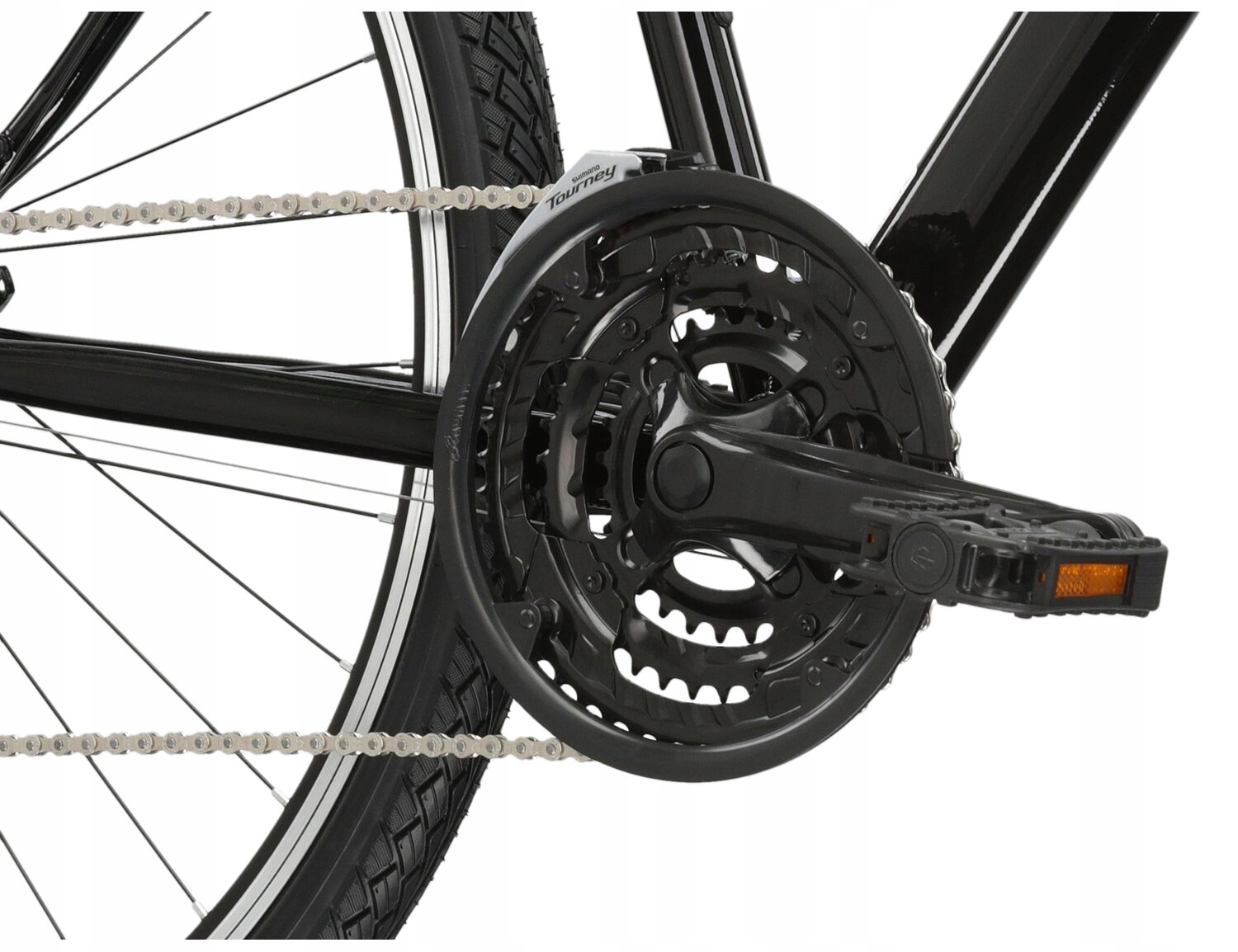 KROSS Evado 2.0 оснащен аксессуарами Shimano. Японский производитель создал манетки, переключатели и кассету, идеально подходящие для передвижения как по городу, так и по лесу. Именно поэтому вы найдете его в своем KROSS Evado 2.0. Задний переключатель Shimano Altus M310 имеет 7 передач, что при поддержке трехрядного кривошипа дает 21 передачу. Такая конфигурация позволит подобрать подходящую частоту вращения педалей для текущей дорожной ситуации, легко преодолевать подъемы и достигать высоких скоростей на ровных поверхностях. KROSS Evado 2.0 оснащен амортизационной вилкой SR Suntour M3010 с ходом 50 миллиметров. Благодаря такому решению мы сохраним комфорт при движении по неровностям и избежим чрезмерной усталости, возникающей в результате постоянной работы нашего тела на неровностях. Это позволит вам добраться быстрее и меньше уставать. KROSS Evado 2.0 имеет 28-дюймовые колеса, которые позволят эффективно передвигаться как по городу, так и по лесным тропам.