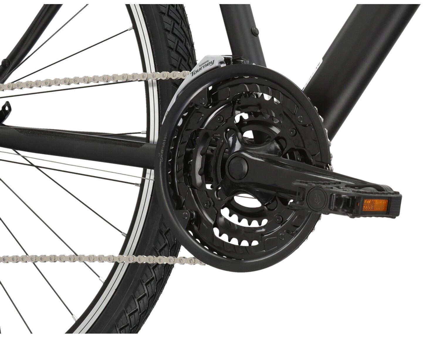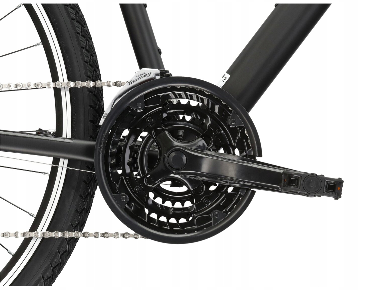 KROSS Evado 2.0 оснащен аксессуарами Shimano. Японский производитель создал манетки, переключатели и кассету, идеально подходящие для передвижения как по городу, так и по лесу. Именно поэтому вы найдете его в своем KROSS Evado 2.0. Задний переключатель Shimano Altus M310 имеет 7 передач, что при поддержке трехрядного кривошипа дает 21 передачу. Такая конфигурация позволит подобрать подходящую частоту вращения педалей для текущей дорожной ситуации, легко преодолевать подъемы и достигать высоких скоростей на ровных поверхностях. KROSS Evado 2.0 оснащен амортизационной вилкой SR Suntour M3010 с ходом 50 миллиметров. Благодаря такому решению мы сохраним комфорт при движении по неровностям и избежим чрезмерной усталости, возникающей в результате постоянной работы нашего тела на неровностях. Это позволит вам добраться быстрее и меньше уставать. KROSS Evado 2.0 имеет 28-дюймовые колеса, которые позволят эффективно передвигаться как по городу, так и по лесным тропам.
