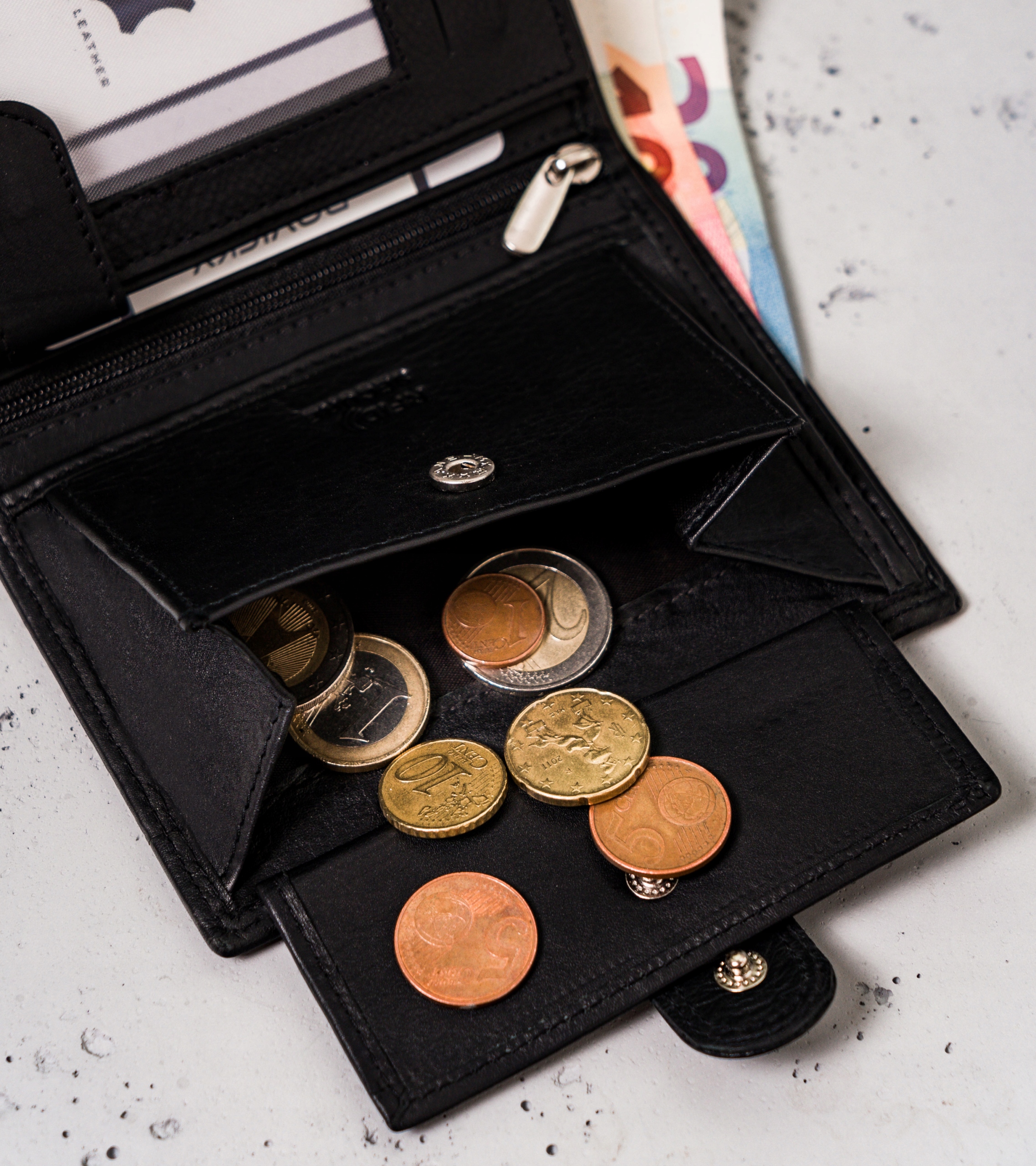 Вы поместите удовлетворительную сумму денег в карманах для банкнот и монет.