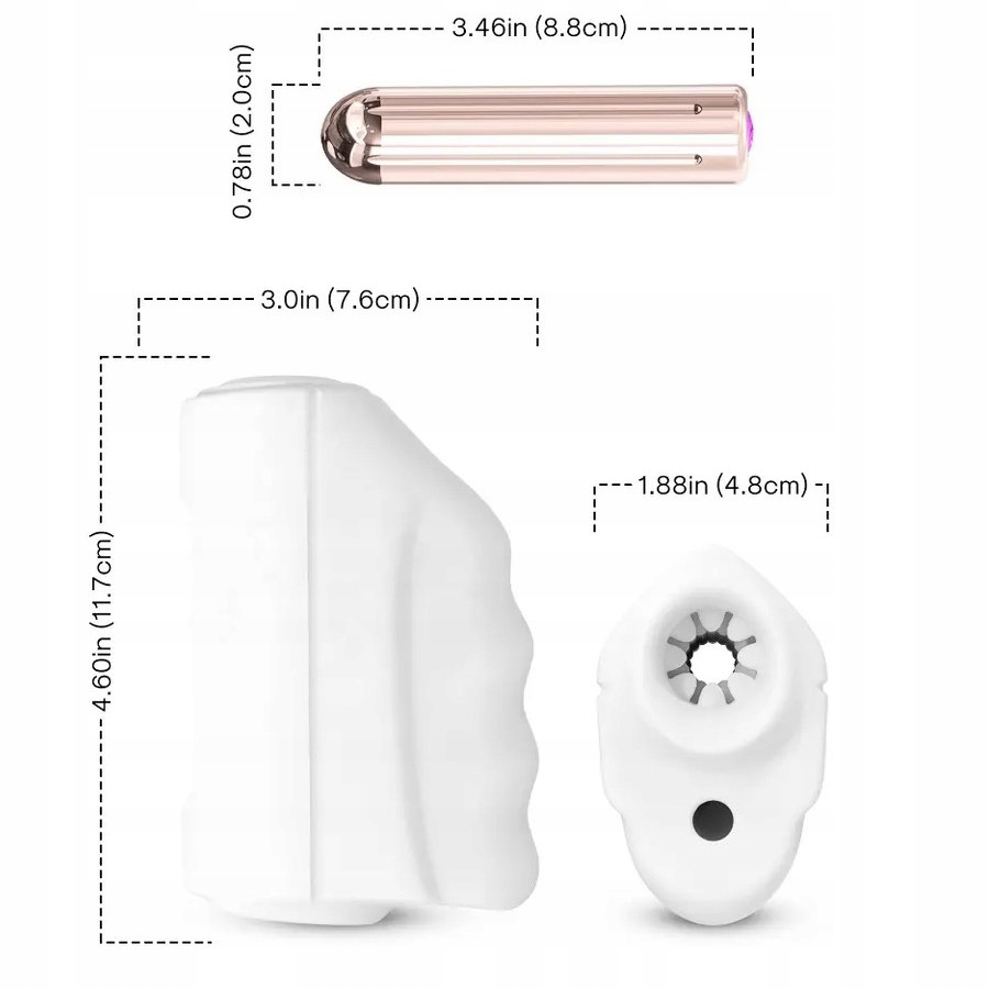 - Размеры вибратора: 8,6 см x 2,5 см.