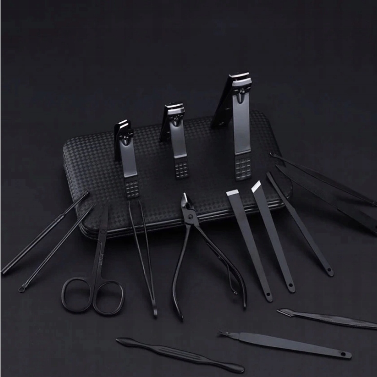 НАБОР МАНИКЮРНО-ПЕДИКЮРНЫХ ИНСТРУМЕНТОВ ДЛЯ НОГТЕЙ ЧЕРНОГО ЦВЕТА С КРАСНОЙ ОБВЯЗКОЙ В ЦЕНТРЕ – 16 ПРЕДМЕТОВ!