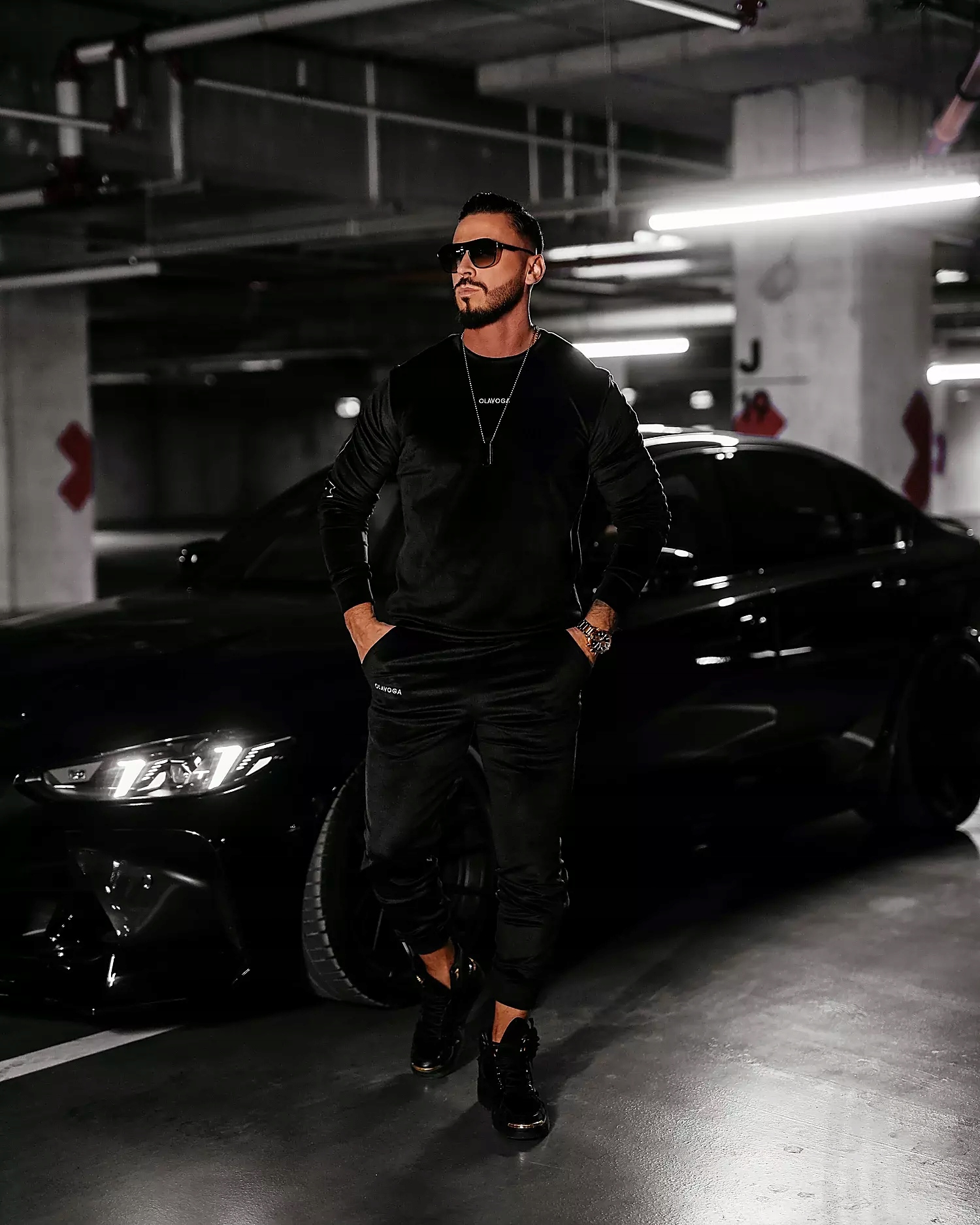 Мужской спортивный комплект. Изготовлен из приятного на ощупь бархата. Верх – свитшот чуть большего размера. без капюшона с плавно спадающими плечами. Минималистичная вышивка с логотипом бренда спереди. ОЛАВОГА. Спинка украшена обширной вышивкой с логотипом бренди. Низ – спортивные брюки с завышенной талией. По бокам карманы. Эластичная талия. Ребристые манжеты по краям. Минималистичная вышивка с логотипом бренда спереди. ОЛАВОГА. Продукт для нее и для него.