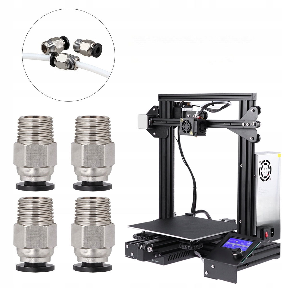 ⭐ ⭐ PTFE Tipe Эти разъемы PTFE имеют хорошего качества и хорошо работают. Это отличный преобразователь для того, кто использует экструдер для металла, потому что вам нужен такой размер для PTFE Tube (в большинстве конфигураций). Функциональный бренд: Uetek. Цвет: черный и серебряный. Материал: металл и пластик. Размер: 20 х 10 х 6,5 мм. Это может быть легко подключено, вставив трубку и автоматически покраснет. Легко отключить трубку с черным орехом. Эллиптический рукав позволяет легко надевать и снимать трубку в ограниченном пространстве. Хорошее качество и высокая производительность. Теплый совет: дорогой покупатель