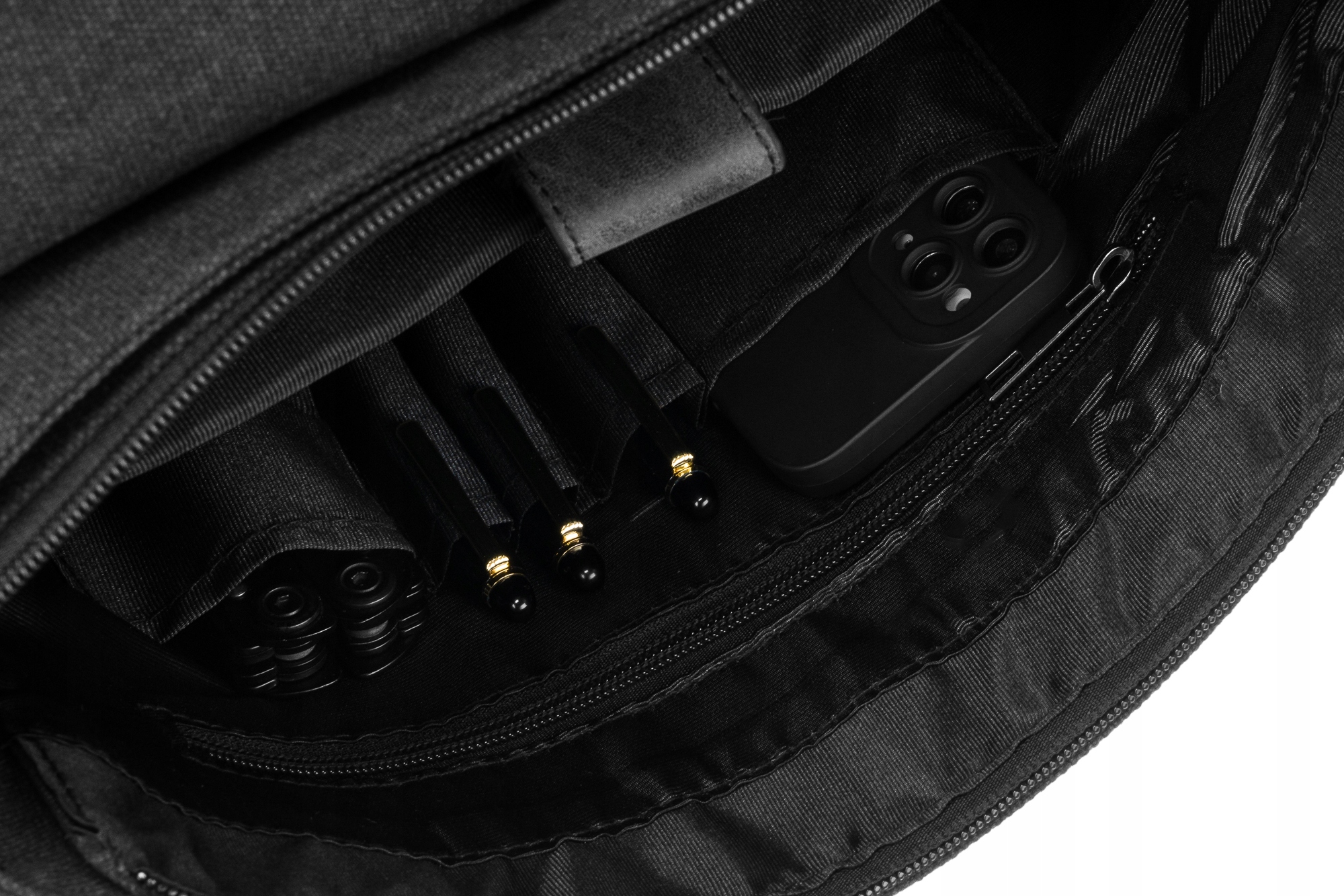 special Разделение для ноутбука с 12 -инч -экраном позволяет безопасное хранилище устройства. Дополнительные карманы Включить отличную организацию этого места. Вы можете потратить их на повседневное использование, например, телефон, ключи, документы или заметки.