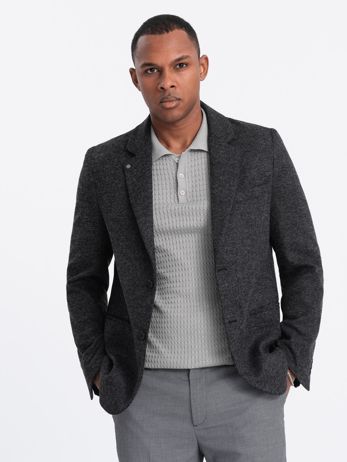 Чоловічий повсякденний жакет з декоративною шпилькою графітовий меланж V2 OM-BLZB-0120 M