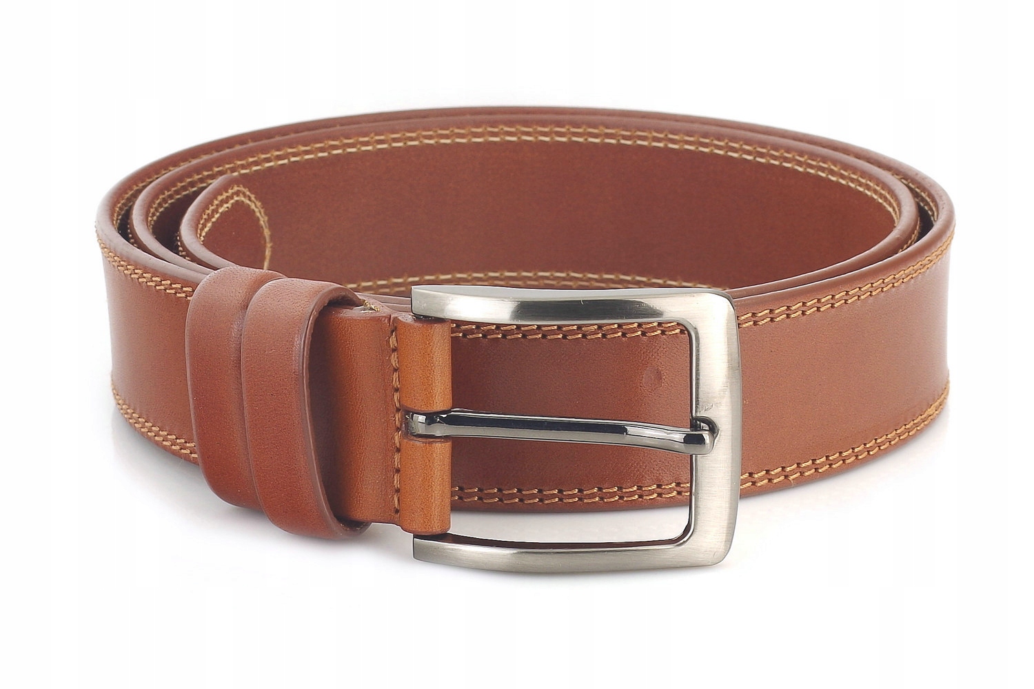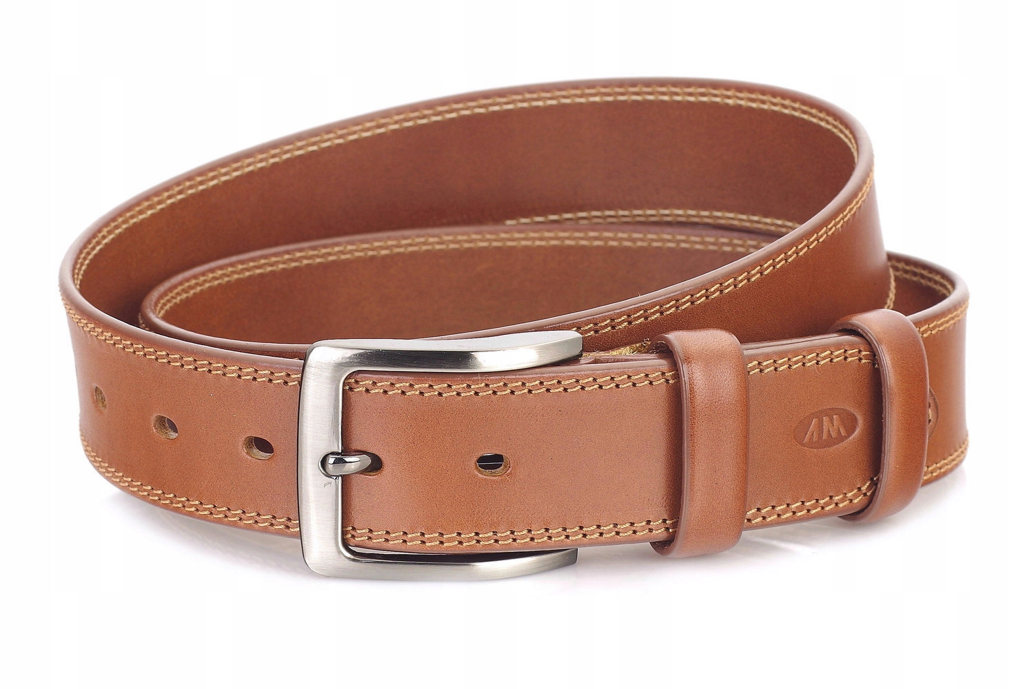 РЕМЕНЬ КОЖАНЫЙ МУЖСКОЙ, ширина 4 см, КОНЬЯК, ДЕКОРАТИВНАЯ ОТСТРОЧКА