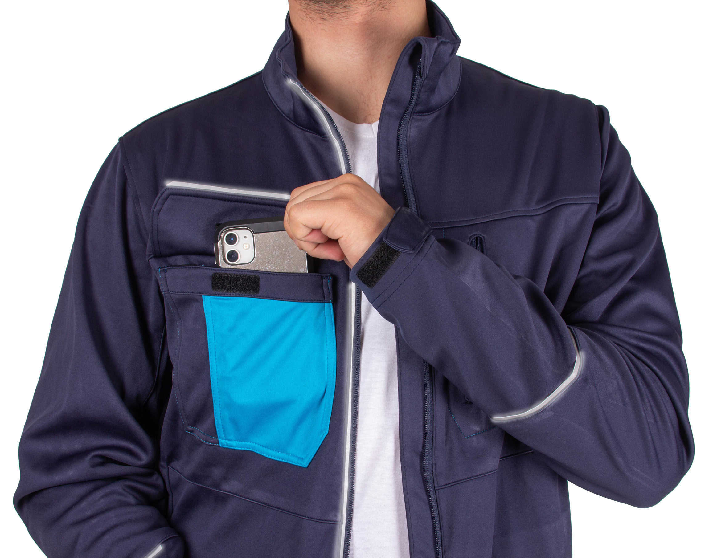 - светоотражающие элементы: светоотражающая полоска вдоль молнии, на нагрудном кармане, на рукавах и на спине.
