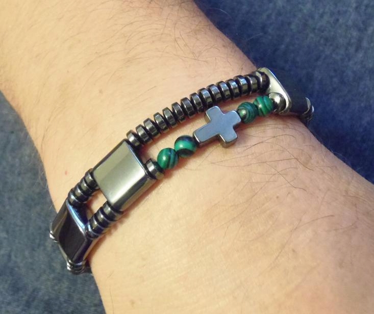 Браслет мужской - номер десять из камней гематита и малахита. Размер крестовины 12мм, диски 4мм, шарики малахитовые 4мм.