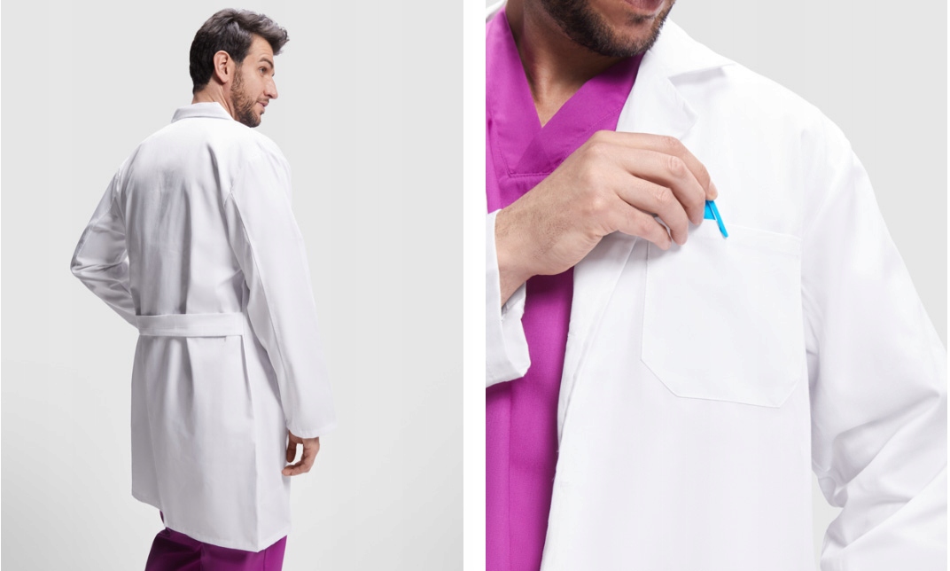 Длинный фартук. · V -neckline. · Центральный вырез с 5 подходящими кнопками. · Один карман на груди и два боковых кармана. На задней части ремня.