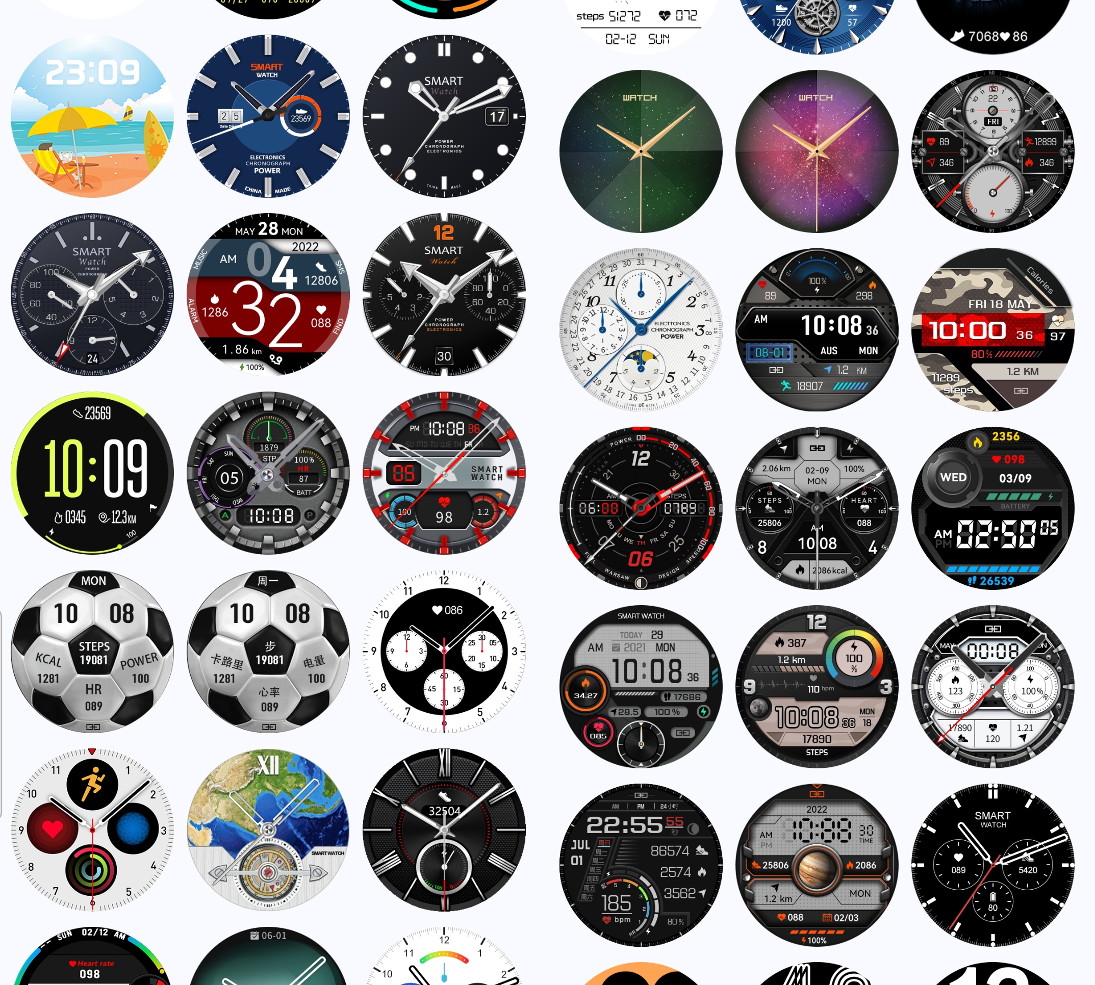 В умных часах можно выбрать 6 различных циферблатов. После подключения к приложению вы можете загрузить новые циферблаты. В приложении вы найдете 285 дополнительных циферблатов!