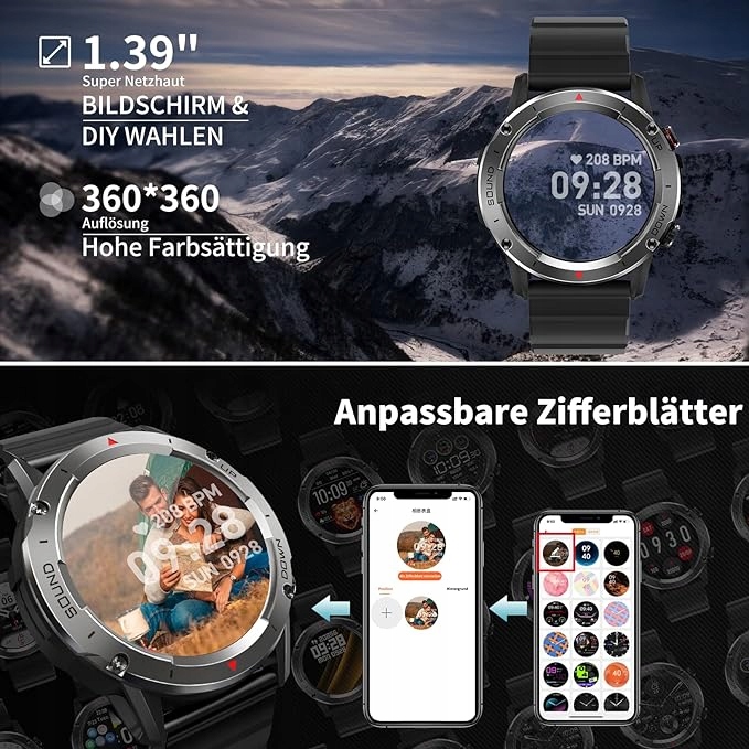 Чоловічий розумний годинник із функцією телефону та монітором активності чорного кольору