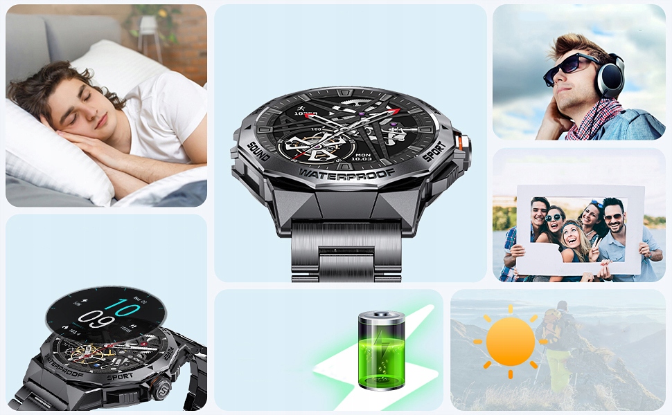 ✅【Более 100 спортивных режимов, умные часы и трекер активности】: Мужские умные часы для активного отдыха имеют 120 различных спортивных режимов, включая бег, альпинизм, езду на велосипеде, прыжки в длину, катание на лыжах, баскетбол, прыжки со скакалкой и многие другие фитнес-режимы. Встроенный биосенсор может измерять такие данные, как частота сердечных сокращений, пройденное расстояние, сожженные калории и время тренировки во время занятий спортом.
