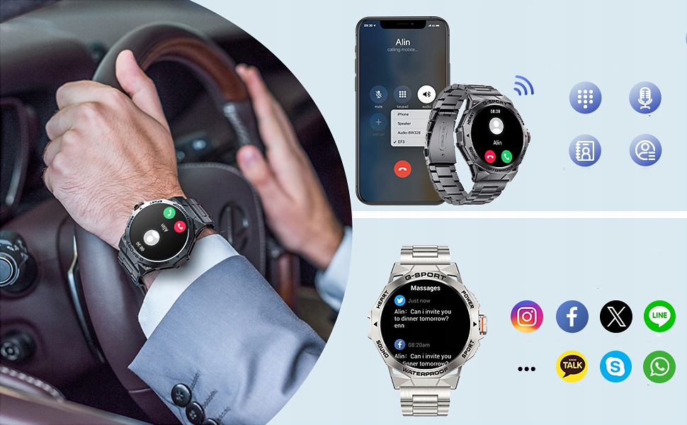 ✅【Многофункциональные умные часы с Bluetooth】: Эти прочные умные часы не только обеспечивает вызовы по Bluetooth, а также функции здоровья и спорта, но также имеет голосовых помощников AI, воспроизведение музыки, прогноз погоды, калькулятор, будильник, таймер обратного отсчета, секундомер, дистанционный затвор, поиск телефона и многие другие полезные функции. Наличие этих часов сделает вашу жизнь более удобной.
