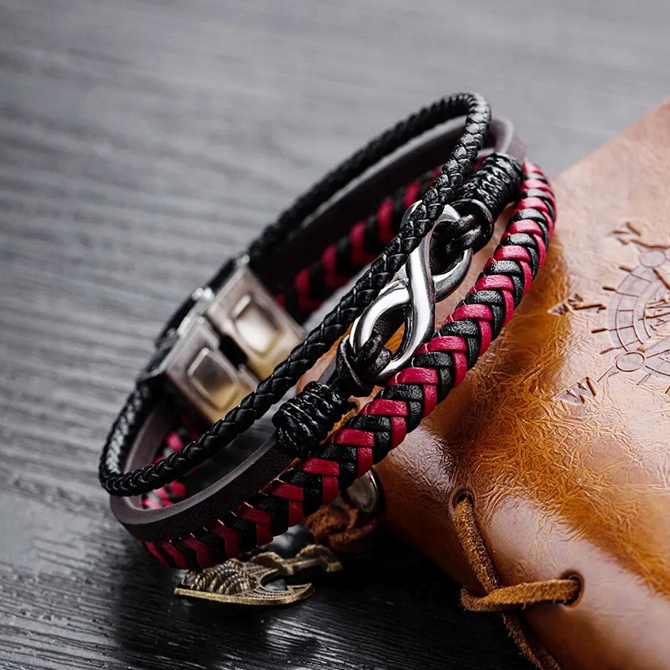 МУЖСКОЙ КОЖАНЫЙ БРАСЛЕТ INFINITY, ХИРУРГИЧЕСКАЯ СТАЛЬ