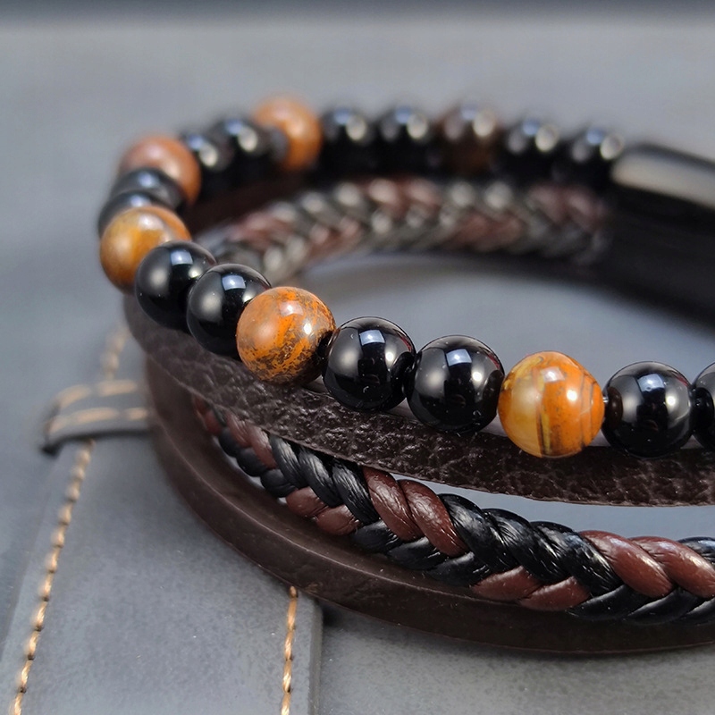 МУЖСКОЙ КОЖАНЫЙ БРАСЛЕТ 316L СТАЛЬ БРОНЗА БУСИНЫ