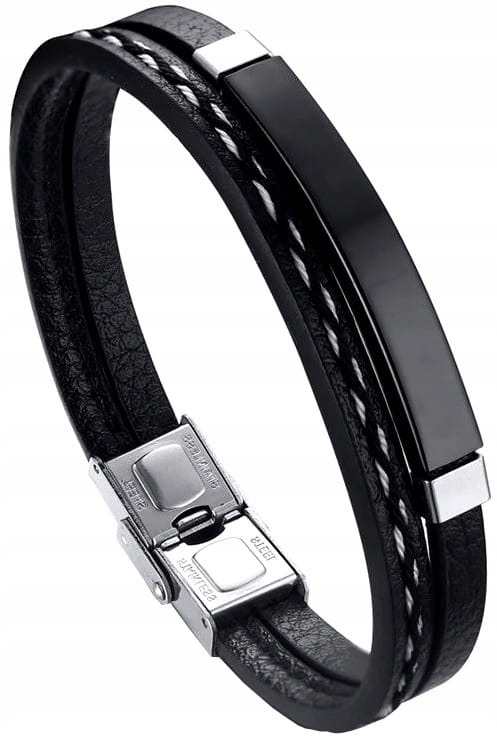 Элегантный, классический и вневременной мужской кожаный браслет с серебряными элементами может стать отличным подарком на день рождения, именины или другую годовщину отношений. Это продукт, изготовленный очень тщательно. Он изготовлен из приятной в носке черной экокожи. Декоративные элементы, в том числе металлическая серебряная застежка и другие детали, надежно защищены от потускнения.