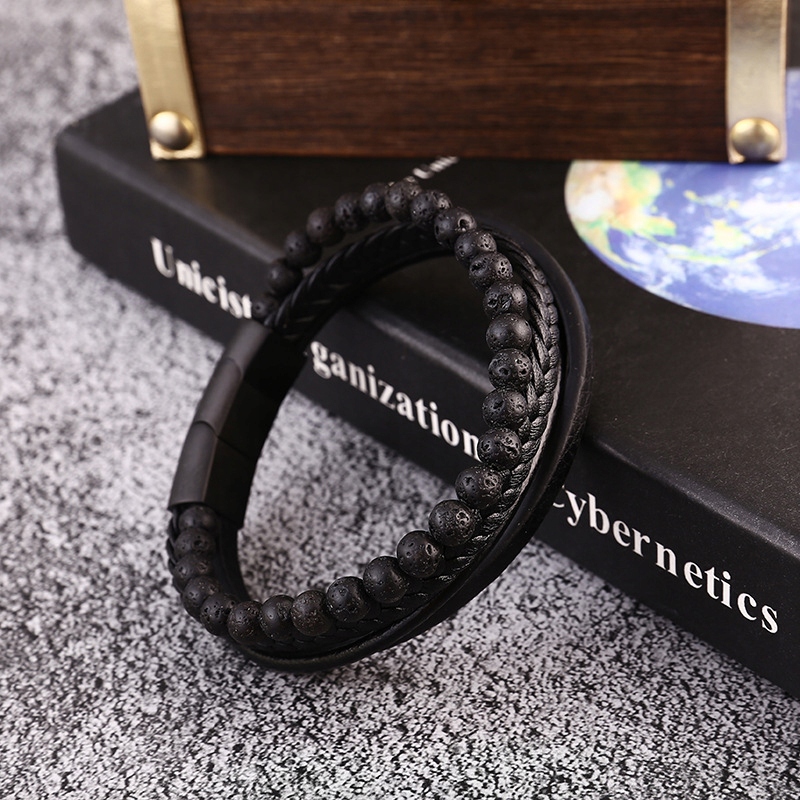 КОЖАНЫЙ БРАСЛЕТ С ВУЛКАНИЧЕСКОЙ ЛАВОЙ