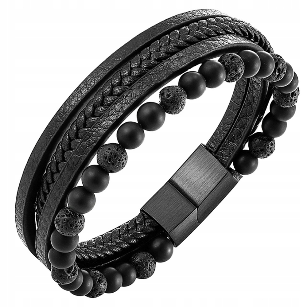 ЧОЛОВІЧИЙ ШКІРЯНИЙ БРАСЛЕТ НАМИСТИНИ 316L
